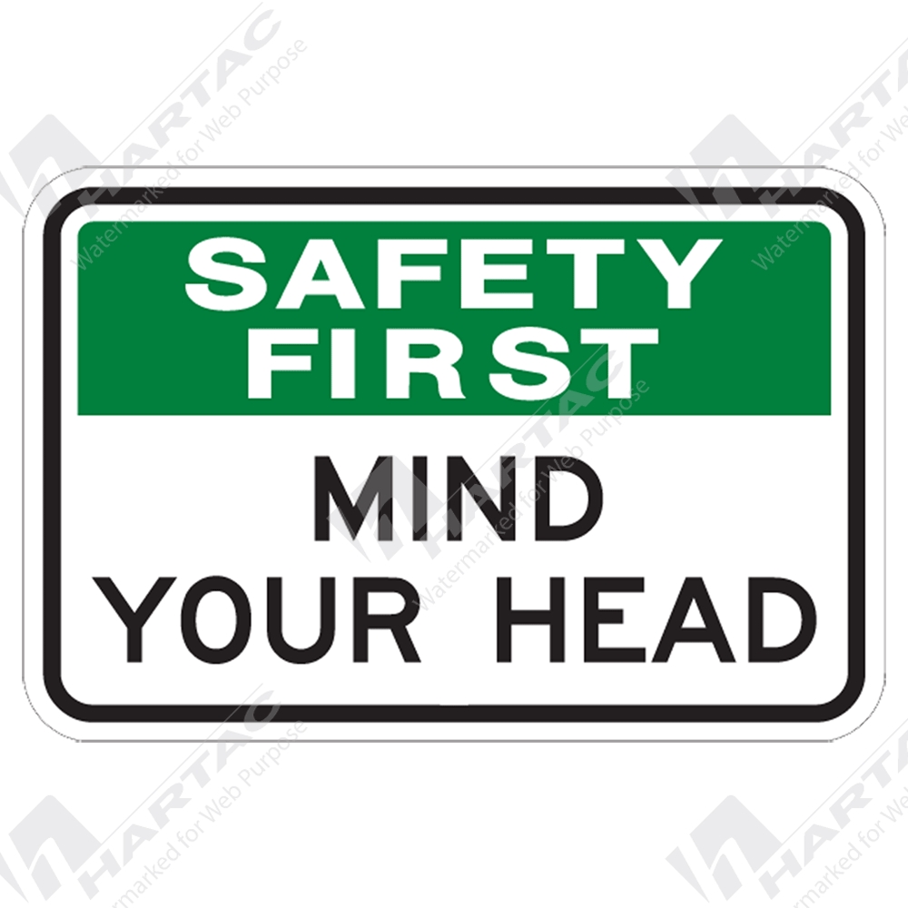 300*225 Safety First Poly Non-Ref Mind Your Head Green & Black on White