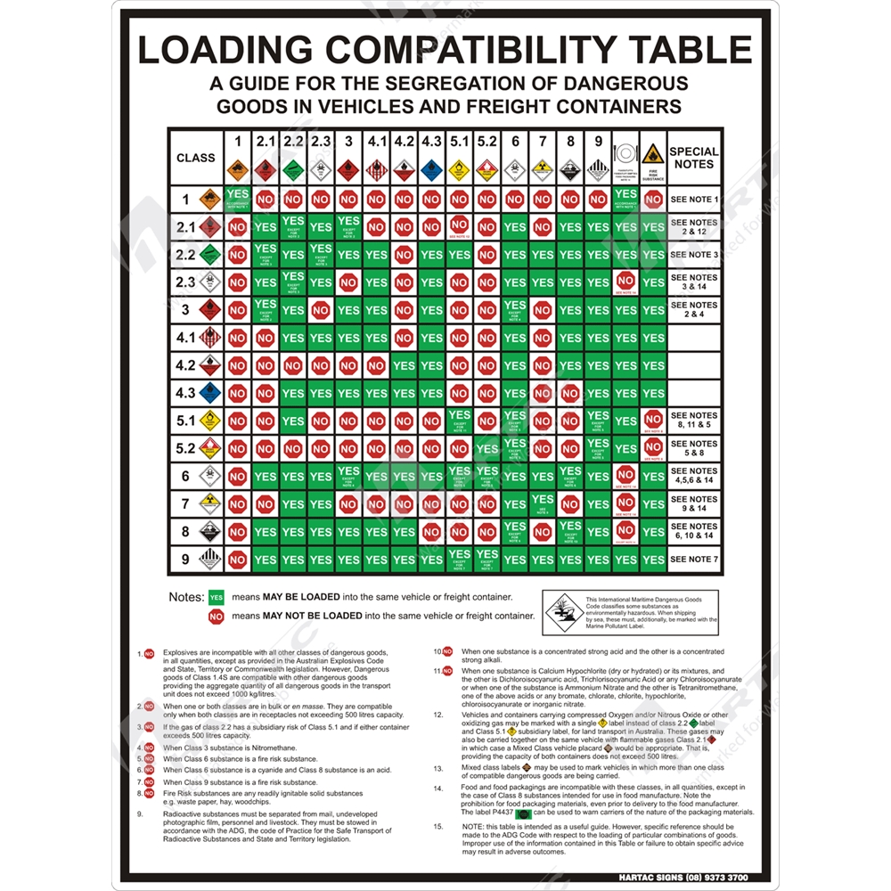 This chart provides a guide to the segregation of dangerous goods in road vehicles and freight containers.